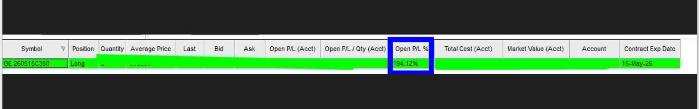 Our GE trades are doing very very very well