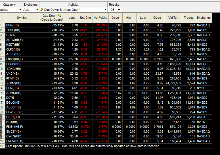Pre Market OCT 20, 2025