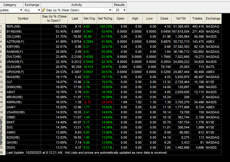 - Pre Market OCT 20, 2025